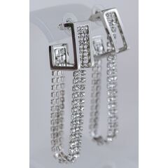 Серьги женские из гипоаллергенного ювелирного сплава серого цвета. Вставка- ювелирное стекло белого цвета. Высота серег- 6,0см, ширина-1,0см. Замок- пусет.