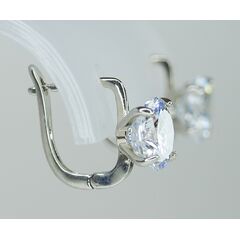 Серьги женские из гипоаллергенного ювелирного сплава серого цвета. Вставка- ювелирное стекло белого цвета. Высота серег- 2,0см, ширина- 1,5см. Застежка- пусет.