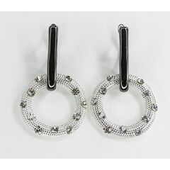 Серьги женские из гипоаллергенного ювелирного сплава черного и серого цвета. Вставка- ювелирное стекло белого цвета. Высота серег- 4,5см, ширина- 2,5см. Английский замок (штифт-1,0см).