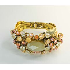 Браслет женский из гипоаллергенного ювелирного сплава желтого цвета. Вставка- ювелирное стекло, цвет- микс. Высота браслета- 2,0см. Замок- карабин с удлиняющей цепочкой. Размер-18,0.