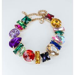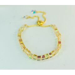 Браслет женский из гипоаллергенного ювелирного сплава желтого цвета. Вставка- ювелирное стекло, цвет- микс. Высота браслета- 2,0см. Замок- карабин с удлиняющей цепочкой. Размер-18,0.