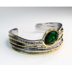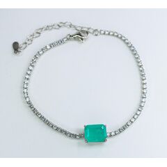Браслет женский из гипоаллергенного ювелирного сплава,цвет-серый.Вставка-ювелирное стекло,цвет-зелёный