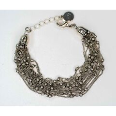 Браслет женский из гипоаллергенного ювелирного сплава,цвет-серый.Без вставок.Состоит из 15 цепочек с шариками, замок браслета- карабин. Размер-17,0.