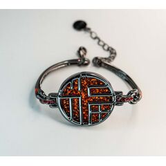 Браслет из гипоаллергенного ювелирного сплава черного цвета . Вставка- ювелирное стекло красного цвета. Размер браслета-18,0+0,5см. Диаметр круга браслета-3см.