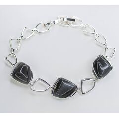 Браслет женский из гипоаллергенного ювелирного сплава,цвет-серый.Вставка-улексит(кошачий глаз),цвет-чёрный.