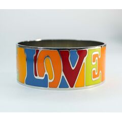 Браслет из гипоаллергенного ювелирного сплава серого цвета. Покрытие эмалью, цвет- красный, оранжевый, зеленый, синий. Без вставок. Неразъемный. Высота браслета-2,8см, диаметр-7см.