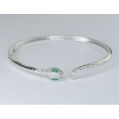 Браслет- обруч женский из гипоаллергенного ювелирного сплава серого цвета. Вставка- циркон, цвет- белый и зеленый. Высота браслета-1,0см. Браслет жесткий, незамкнутый, безразмерный, без замка.