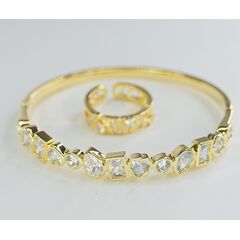 Браслет женский в виде жесткого обруча из гипоаллергенного ювелирного сплава желтого цвета. Вставка- циркон белого цвета. Высота браслета-1,0см. Браслет- безразмерный, незамкнутый, без замка.
