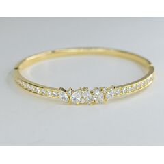 Браслет женский из гипоаллергенного ювелирного сплава желтого цвета. Вставка- цирконы белого цвета. Браслет жесткий в виде обруча, замок- пряжка. Толщина браслета-1,0см. Размер -18,0.