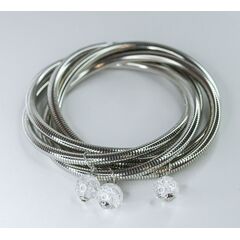 Браслет женский из гипоаллергенного ювелирного сплава серого цвета. Вставка- муранское прозрачное стекло в виде подвесок- шаров. Высота браслета--3,0см. Замок- карабин с удлиняющей цепочкой. Размер-18,0.