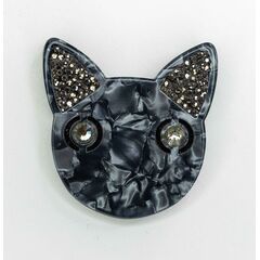 Брошь из гипоаллергенного ювелирного пластика, цвет- серый.Вставка- ювелирное стекло серого цвета. Высота брошки-5,5см, ширина-5,5см. Застежка- магнит из серого ювелирного сплава.