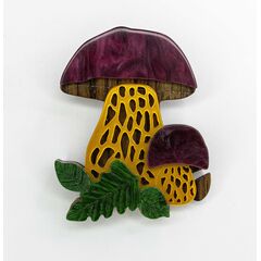 Брошь из гипоаллергенного ювелирного пластика, цвет- желтый, зеленый, фиолетовый. Высота брошки-6см, ширина-5см. Застежка- булавка из серого ювелирного сплава.