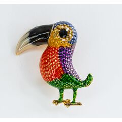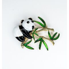 Брошь из гипоаллергенного ювелирного сплава желтого цвета. Покрытие эмалью, цвет- черный, белый, зеленый. Высота броши-4см, ширина-7см. Застежка- булавка.