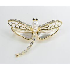 Брошь женская из гипоаллергенного ювелирного сплава желтого цвета. Вставка- жемчуг и гелиотис( перламутр) и цирконы белого цвета. Высота брошки-3,5см, ширина-5,5см. Застежка- булавка.