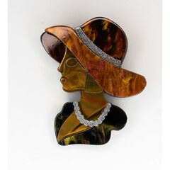 Брошь из гипоаллергенного ювелирного пластика, цвет- черный, коричневый и желтый. Высота брошки-5,5см, ширина-5,5см. Застежка- булавка из желтого ювелирного сплава.