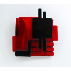 Брошь из гипоаллергенного ювелирного пластика, цвет-черный, красный. Высота броши-2,5см, ширина-7,5см. Застежка из ювелирного сплава серого цвета-булавка.