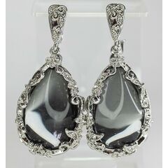 Серьги из гипоаллергенного ювелирного сплава серого цвета. Вставка- улексит ( кошачий глаз), цвет- серый. Высота серег-5,0см, ширина-3,5см. Английский замок (швенза-1,0см).