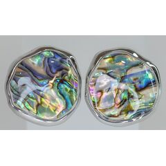 Серьги женские из гипоаллергенного ювелирного сплава серого цвета. Вставка- перламутр радужного цвета. Высота серег-3,0см, ширина -2,5см. Итальянский замок (штифт-1,2см и застежка- клипса).
