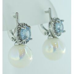 Серьги женские из гипоаллергенного ювелирного сплава серого цвета. Вставка- кварц и жемчуг Майорка белого цвета. Высота серег- 3,0см, ширина-1,2см. Застежка- английская ( штифт-1,0см).