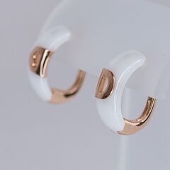 Серьги из гипоаллергенного ювелирного сплава желтого цвета и керамики белого цвета. Без вставок. Высота серег-2,0см, ширина-1,2см. Английский замок (штифт-1,0см).