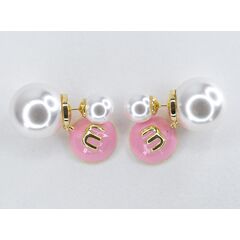 Серьги из гипоаллергенного ювелирного сплава желтого цвета. Вставка- жемчуг белого цвета. Покрытие эмалью розового цвета. Высота серег-2,0см, ширина-1,0см. Застежка- пусет.