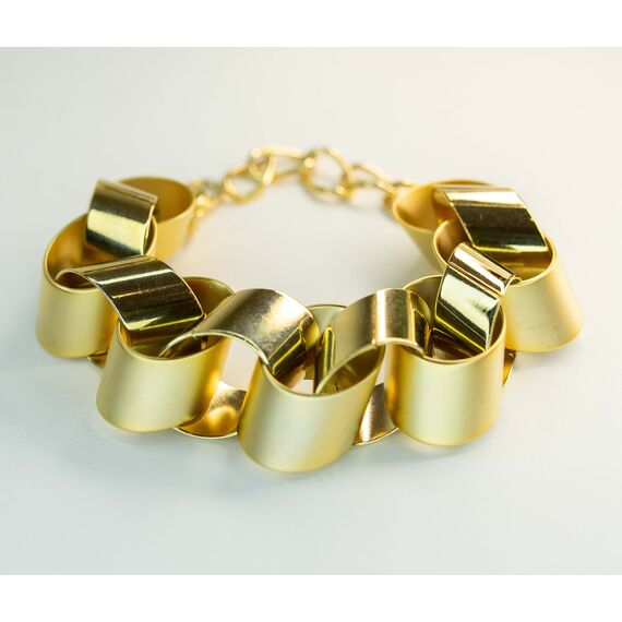 Браслет женский из гипоаллергенного ювелирного сплава,цвет-желтый,без вставок. Состоит из звеньев, высота-1см, ширина-1,5см. Размер-18,0. Замок у браслета- карабин.
