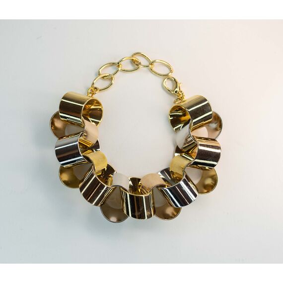 Браслет женский из гипоаллергенного ювелирного сплава,цвет-желтый,без вставок. Размер-17,0+0,5см.