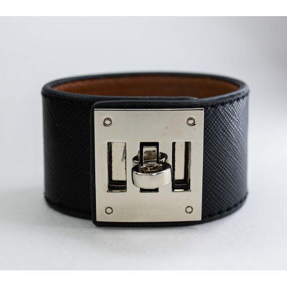 Браслет из гипоаллергенного ювелирного сплава серого цвета и кожаного ремешка черного цвета. Высота браслета-3,5см. Размер-18,0.