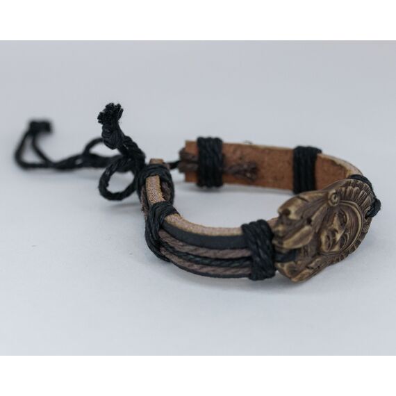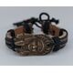 Браслет мужской из гипоаллергенного ювелирного сплава коричневого цвета и кожаных ремешков черного цвета. Высота браслета-1,0см. Застежка-как у браслетов шамбала, размер-18,0.