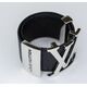 Браслет женский из гипоаллергенного ювелирного сплава серого цвета и кожи черного цвета. Высота и ширина литой металлической части браслета-3см. Высота ремешка из кожи-2,6см.Застежка-пряжка.