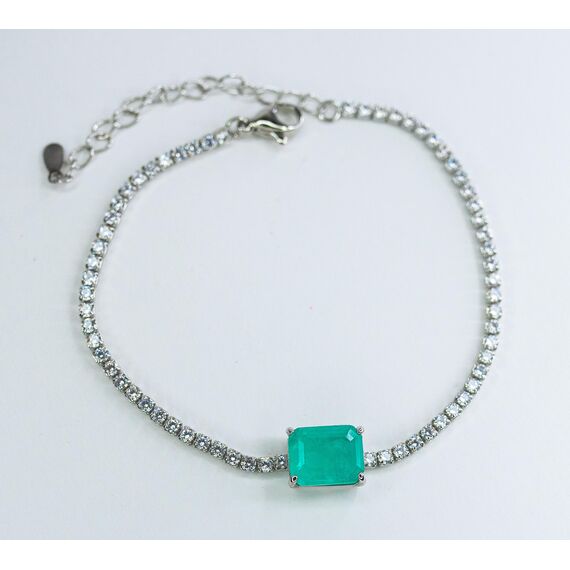 Браслет женский из гипоаллергенного ювелирного сплава,цвет-серый. Вставка-ювелирное стекло белого и зеленого цвета. Размер-17,0-18,0.