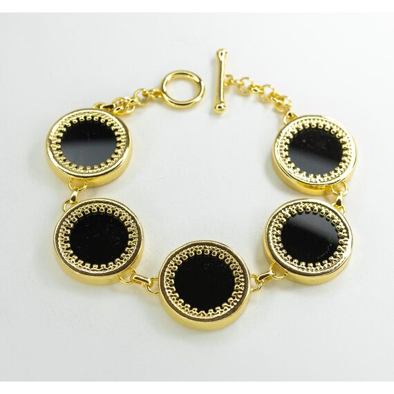 Браслет женский из гипоаллергенного ювелирного сплава,цвет-жёлтый. Покрытие эмалью черного цвета. Замок у браслета- тогл. Размер-18,0.