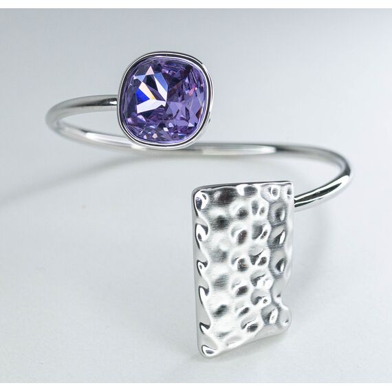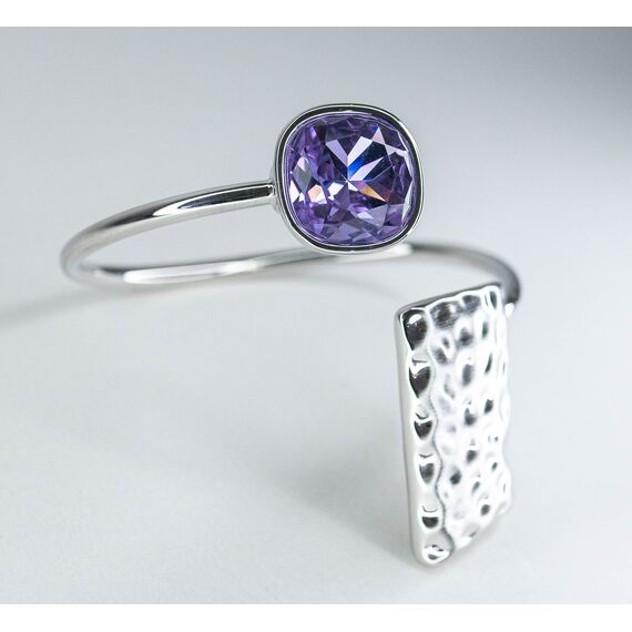 Браслет женский из гипоаллергенного ювелирного сплава серого цвета со вставкой из кварца (d-1,0см) сиреневого цвета. Браслет - незамкнутый, жесткий, безразмерный. Высота браслета-4,0см, ширина-3,0см.
