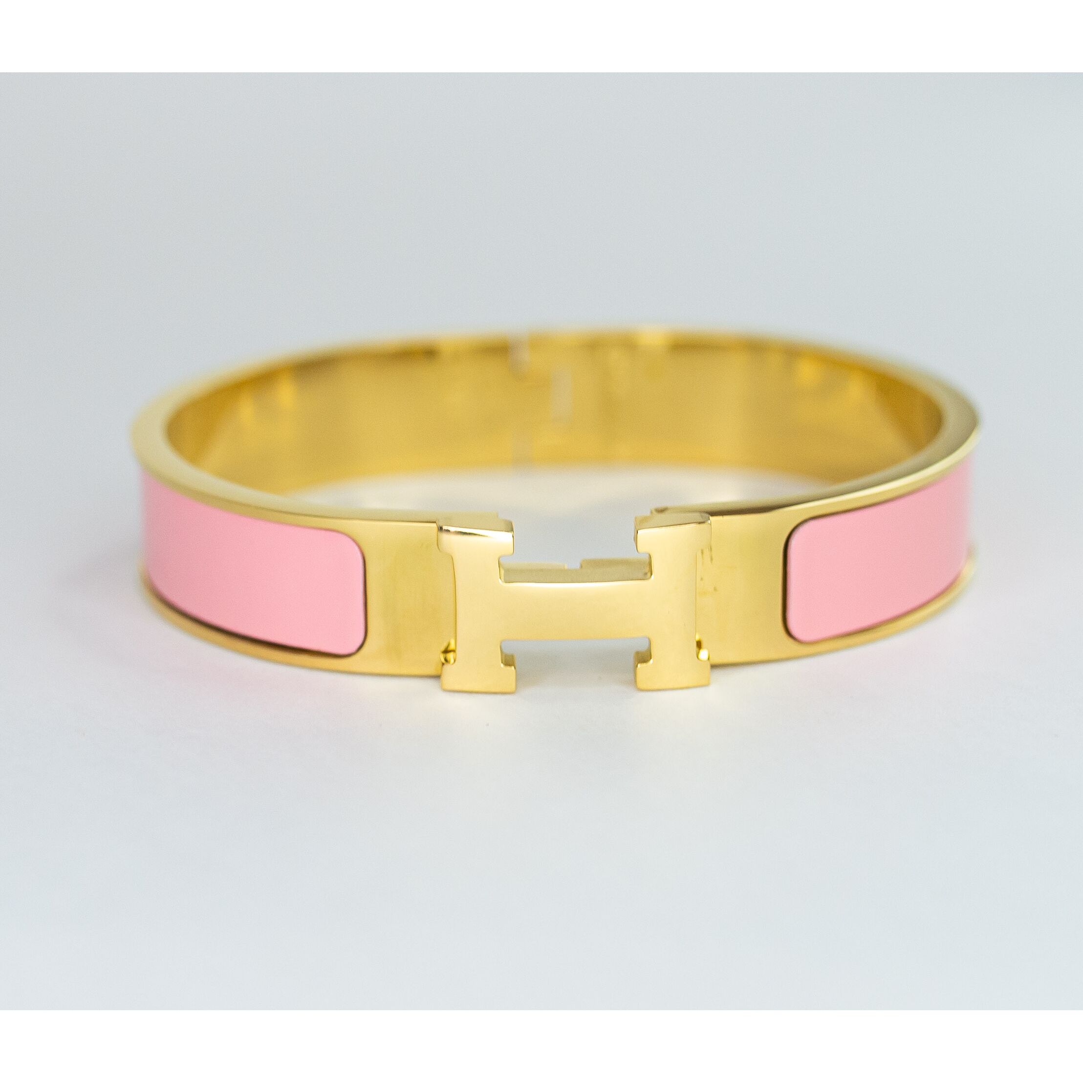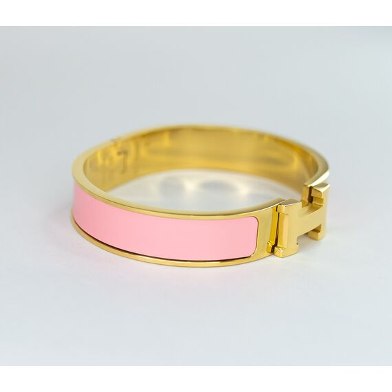 Браслет женский из высококачественного гипоаллергенного ювелирного сплава желтого цвета с покрытием эмалью розового цвета. Браслет разъёмный, с замком- пряжка. Высота браслета- 2,0см, размер- 18,0.