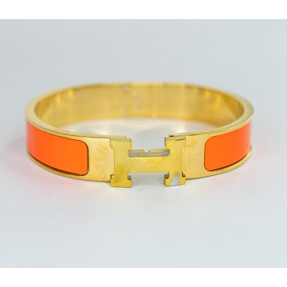 Браслет женский из высококачественного гипоаллергенного ювелирного сплава желтого цвета с покрытием эмалью оранжевого цвета. Браслет разъёмный, с замком- пряжка. Высота браслета- 2,0см, размер- 18,0.