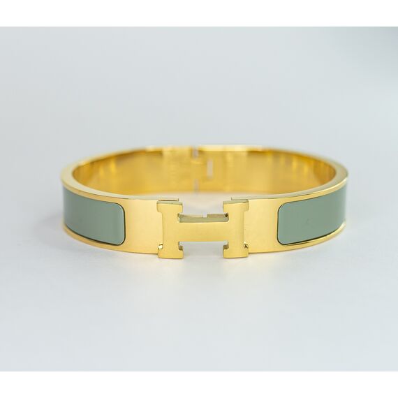Браслет женский из высококачественного гипоаллергенного ювелирного сплава желтого цвета с покрытием эмалью серого цвета. Браслет разъёмный, с замком- пряжка. Высота браслета- 2,0см, размер- 18,0.