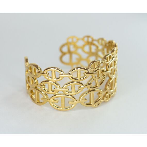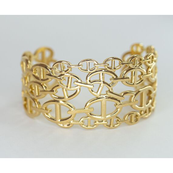 Браслет женский из высококачественного гипоаллергенного ювелирного сплава желтого цвета. Без вставок. Браслет незамкнутый, безразмерный. Высота браслета- 5,0см.