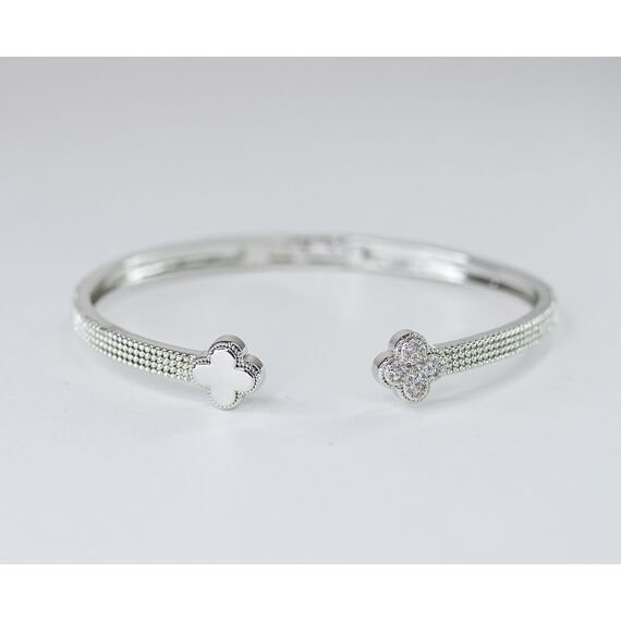 Браслет женский из высококачественного гипоаллергенного ювелирного сплава серого цвета. Вставка- цирконы белого цвета. Высота браслета-1,0см. Браслет жесткий, незамкнутый, без замка, размер-17,0-18,0.