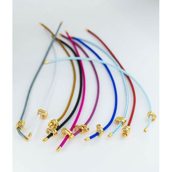 Браслет женский из текстильного ремешка коричневого цвета с добавлением элементов из гипоаллергенного ювелирного сплава желтого цвета. Высота ремешка-0,3см., размер регулируется.