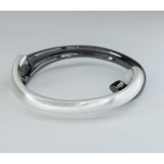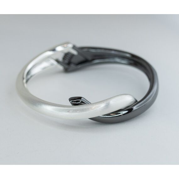 Браслет женский из высококачественного ювелирного сплава серого и черного цвета. Без вставок. Высота браслета- 2,0см. Браслет разъёмный на шарнире, жесткий. Размер- 18,0.