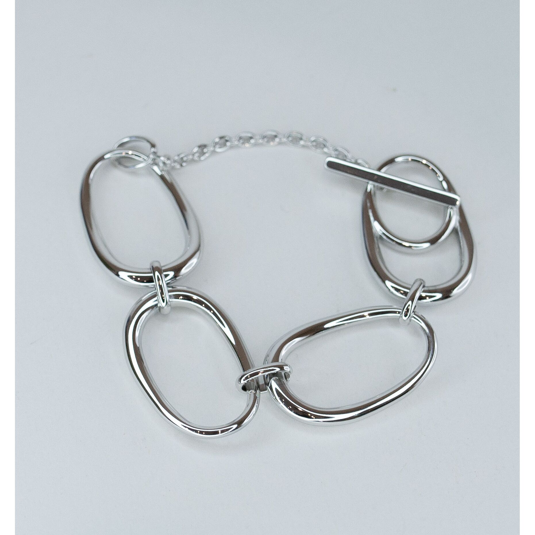Браслет женский состоит из крупных звеньев из гипоаллергенного ювелирного сплава серого цвета. Без вставок. Высота серег-2,0см. замок- тогл. Размер-18,0.