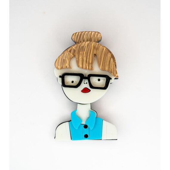Брошь женская из гипоаллергенного ювелирного пластика, цвет- голубой, коричневый, черный, белый. Высота брошки-6см, ширина-3,5см. Застежка- булавка.