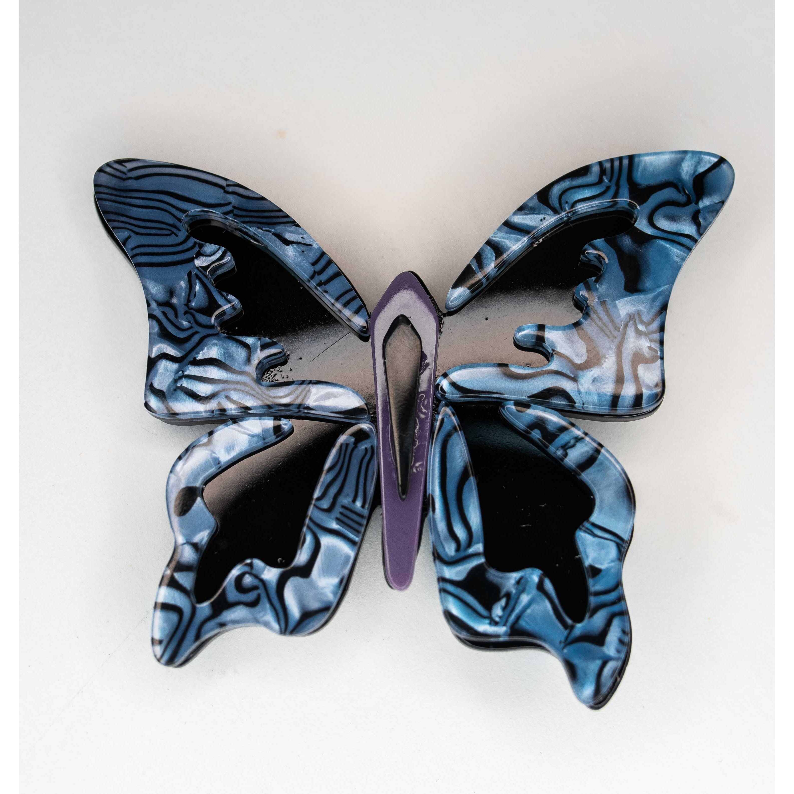 Брошь женская из гипоаллергенного ювелирного пластика, цвет- черный, серый, сиреневый. Высота брошки-6см, ширина-8см. Застежка- булавка из ювелирного сплава серого цвета.