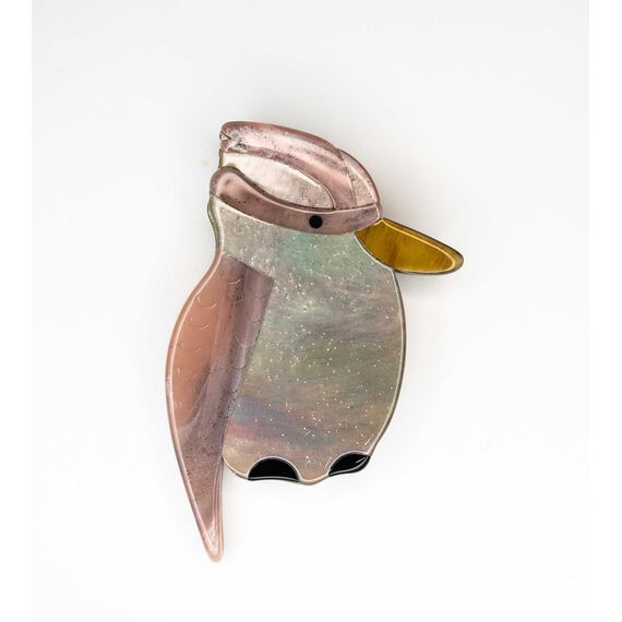 Брошь женская из гипоаллергенного ювелирного пластика, цвет- розовый, серый, коричневый. Высота брошки-8см, ширина-4,5см. Застежка- булавка.