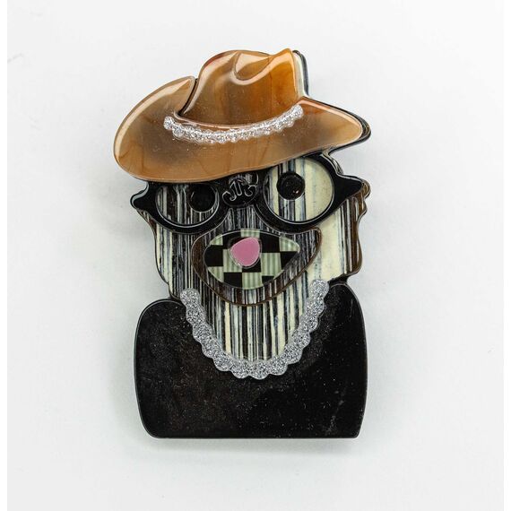 Брошь женская из гипоаллергенного ювелирного пластика, цвет- белый,черный, коричневый. Высота брошки-6см, ширина-4см. Застежка- булавка.