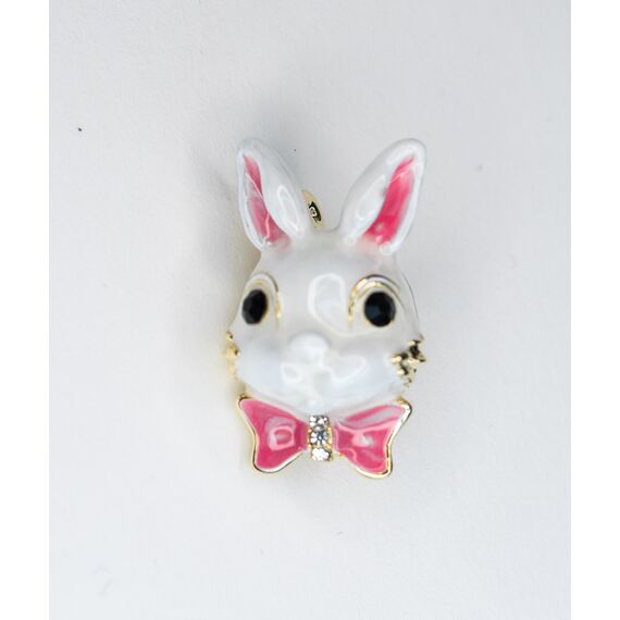 Брошь из гипоаллергенного ювелирного сплава желтого цвета. Покрытие эмалью, цвет-белый, розовый. вставка- ювелирное стекло черного цвета. Высота брошки- 2,7см, ширина- 1,8см. Застежка- булавка.