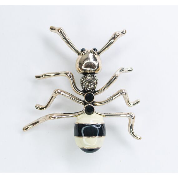 Брошь из гипоаллергенного ювелирного сплава серого цвета.Вставка- ювелирное стекло белого и черного цвета. Покрытие эмалью, цвет- белый, черный. Высота броши-4,0см, ширина-5,5см. Застежка- булавка.