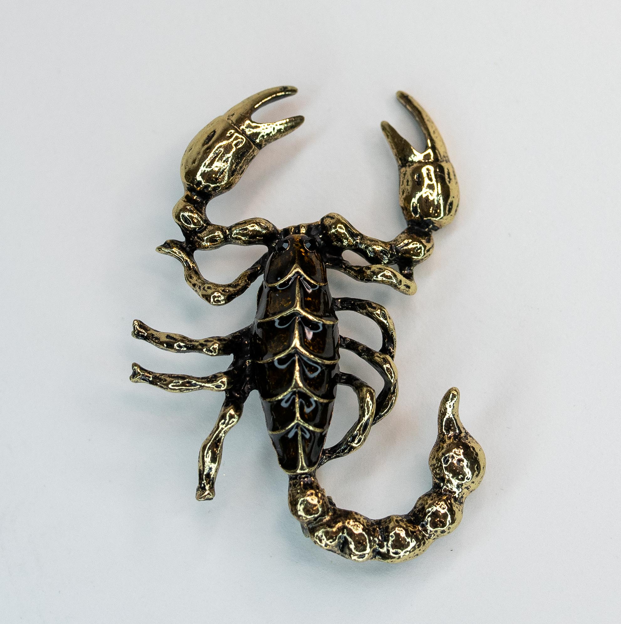 Брошь из гипоаллергенного ювелирного сплава желтого и черного цвета. Покрытие эмалью коричневого цвета. Высота броши-3,5см, ширина-5,0см. Застежка- булавка.