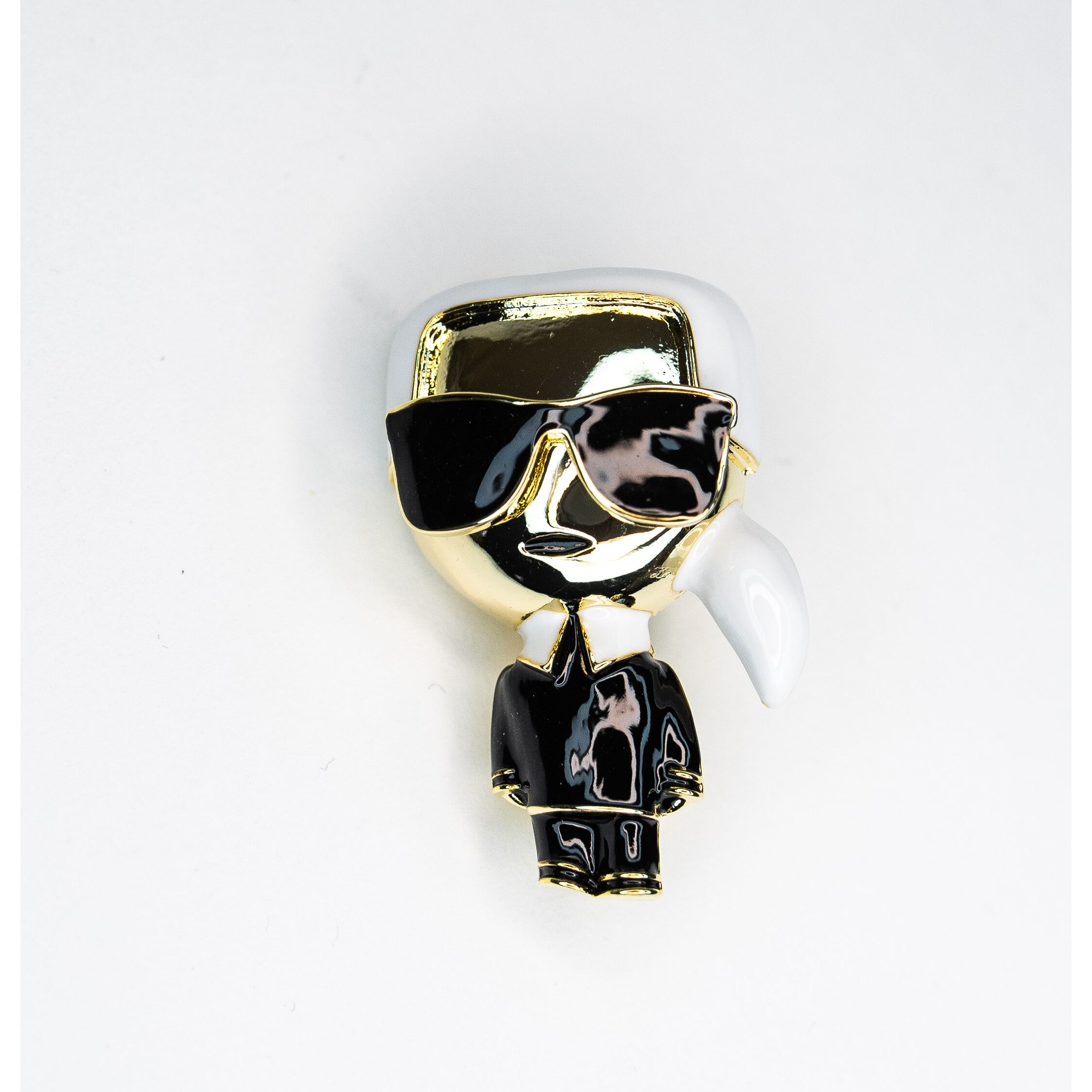 Брошь из гипоаллергенного ювелирного сплава желтого цвета. Покрытие эмалью черного и белого цвета. Высота броши-4см, ширина-2,5см. Застежка- булавка.