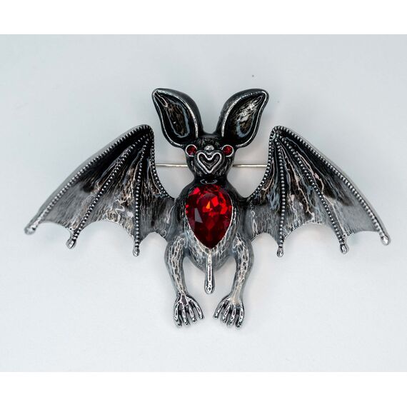 Брошь ( подвеска) из гипоаллергенного ювелирного сплава серого цвета. Вставка- ювелирное стекло красного цвета. Покрытие эмалью, цвет- серый. Высота броши-5,0см, ширина-7,5см. Застежка- булавка.
